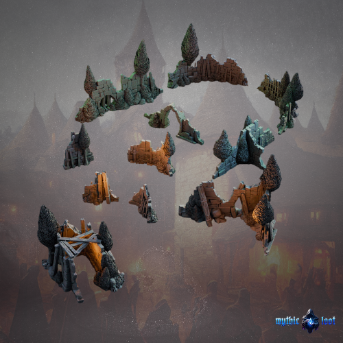 A modular set of ruined forest walls, perfect for adding scattered terrain, overgrown cover, or ancient remains to your tables.